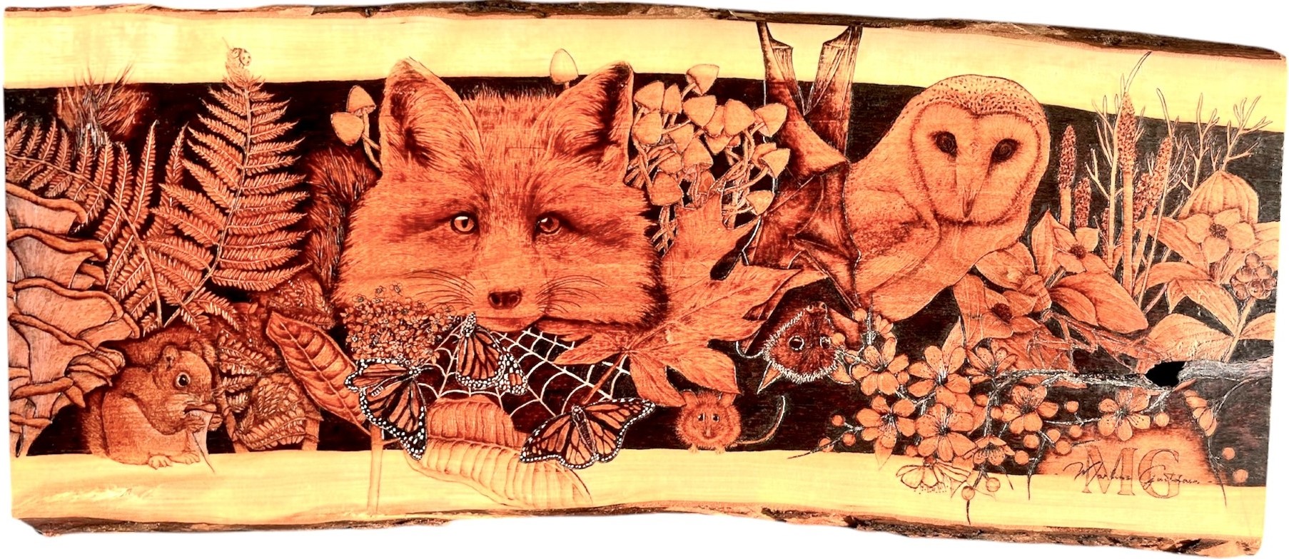 Aujourd’hui, ma démarche artistique se présente comme la synthèse de mes passions les plus profondes; l’horticulture, les animaux et le réalisme artistique. Inspirée par la nature elle-même, je canalise cette inspiration dans la création d’œuvres de pyrogravure. À travers cette technique, je cherche à capturer l’essence même de la vie végétale et animale.