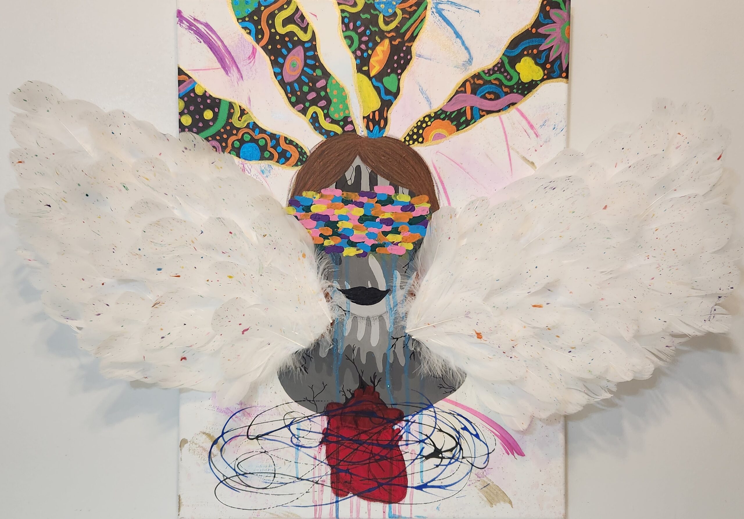 L’imagination artistique qui sort de sa tête est le fond de l’œuvre et c’est son échappatoire pour être capable d’aller de l’avant pour créer afin de libérer ses émotions à cause des événements qu’elle vit actuellement.