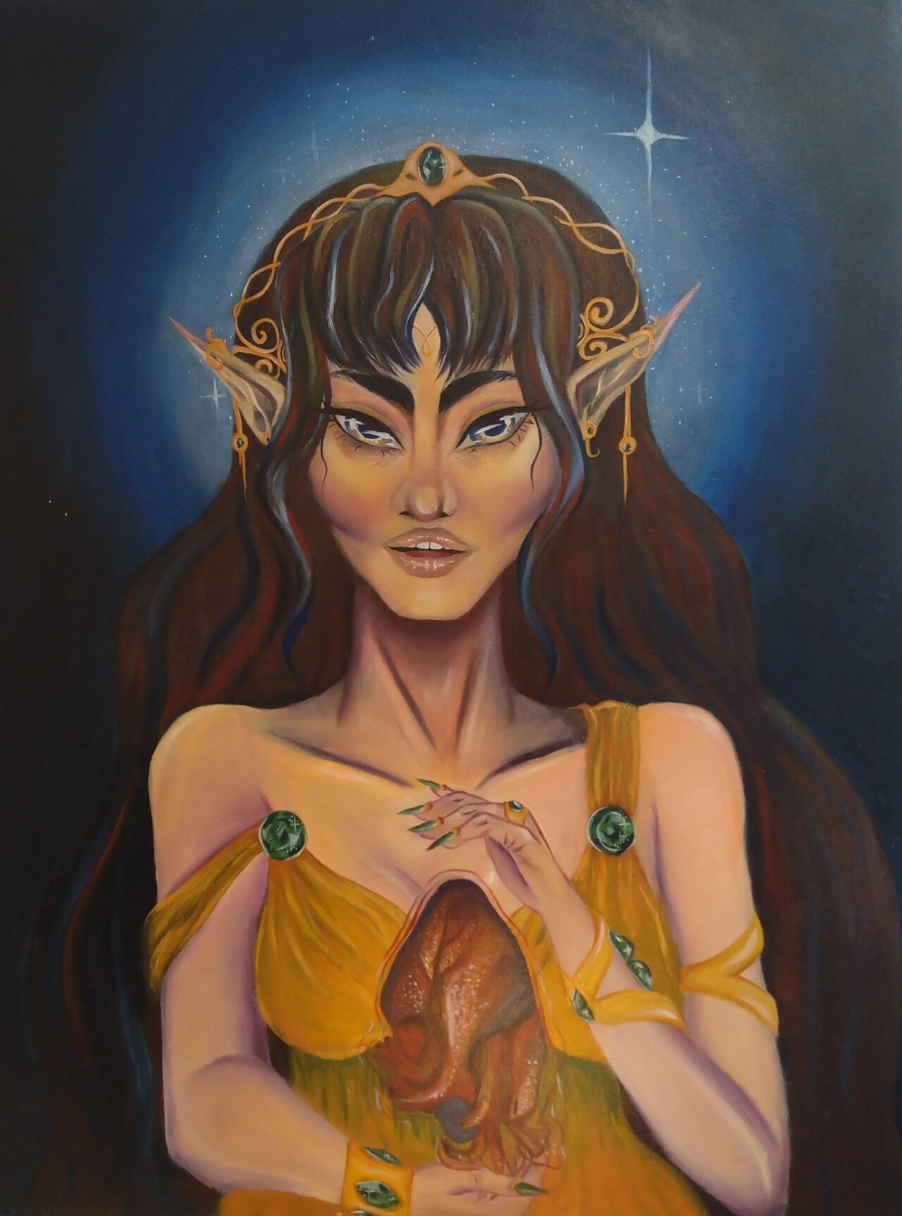 Je suis quelqu’un qui préfère le monde des rêves plutôt que le monde réel. J’aime représenter des images qui décrivent exactement ce que je ressens, rêve ou imagine à longueur de journée. La pensée est un monde sombre, curieux et rarement proche de la réalité. On pourrait dire la même chose de mes peintures. J’aime représenter des personnages ou des paysages qui ne sont pas ce que vous pouvez voir en regardant par votre fenêtre. J’ai toujours travaillé la peinture pour matérialiser mes idées, que ce soit à l’aquarelle, à l’acrylique, à la gouache, à l’encre ou présentement par l’huile. En ce moment, j’aime m’inspirer des portraits de l’époque artistique du Rococo. J’aime utiliser beaucoup de couleurs, de bijoux ou des modèles avec beaucoup de sagesse. Je crois au sentiment qu’une image peut vous donner. Très souvent, j’aime représenter des figures qui sont autant joyeuses, calme et belles. Cependant, j’aime aussi représenter des images qui peuvent déranger certains par des détails plus horrifiques ou graphiques. Il n’y a pas de limites dans l’art et je continue à repousser le réel pour illustrer des images irréelles.
