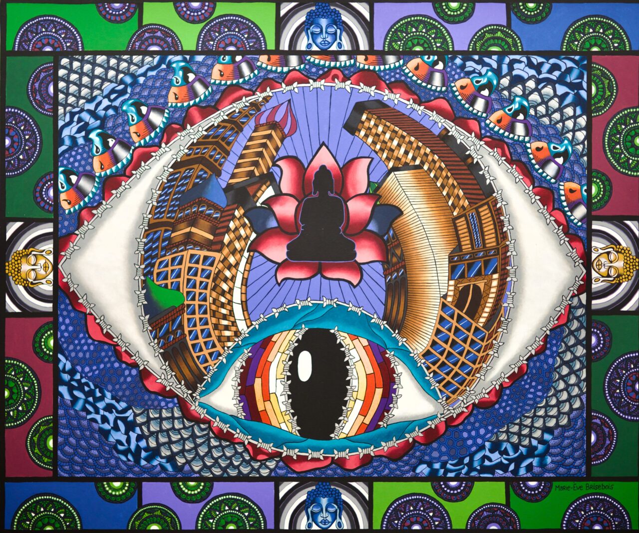 Dès mon enfance, je vivais un constant désordre dans ma tête, affolée par une perte de contrôle de mes émotions et de mon environnement. Enfermée dans une prison de glace, l’âme piégée dans une tempête, c’est à ce moment que je me suis mise à peindre. Au début, je m’appliquais à faire des reproductions qui calmaient mes angoisses mais qui laissaient chez moi un sentiment d’imposture. Avec le temps, j’ai développé une minutie de l’organisation des formes et une maîtrise des dégradés qui ont contribué à développer l’unicité de mes créations. Ainsi, j’ai développé une confiance en mes capacités de traduire mes émotions à travers des scènes colorées et fantastiques, habitées de personnages touchants, dans des scénarios empreints d’humour et d’émerveillement. Peindre me procure un bien-être vital. J’y raconte mon passé en transformant les émotions en quelque chose de fantastique qui me permet de les partager aux autres.