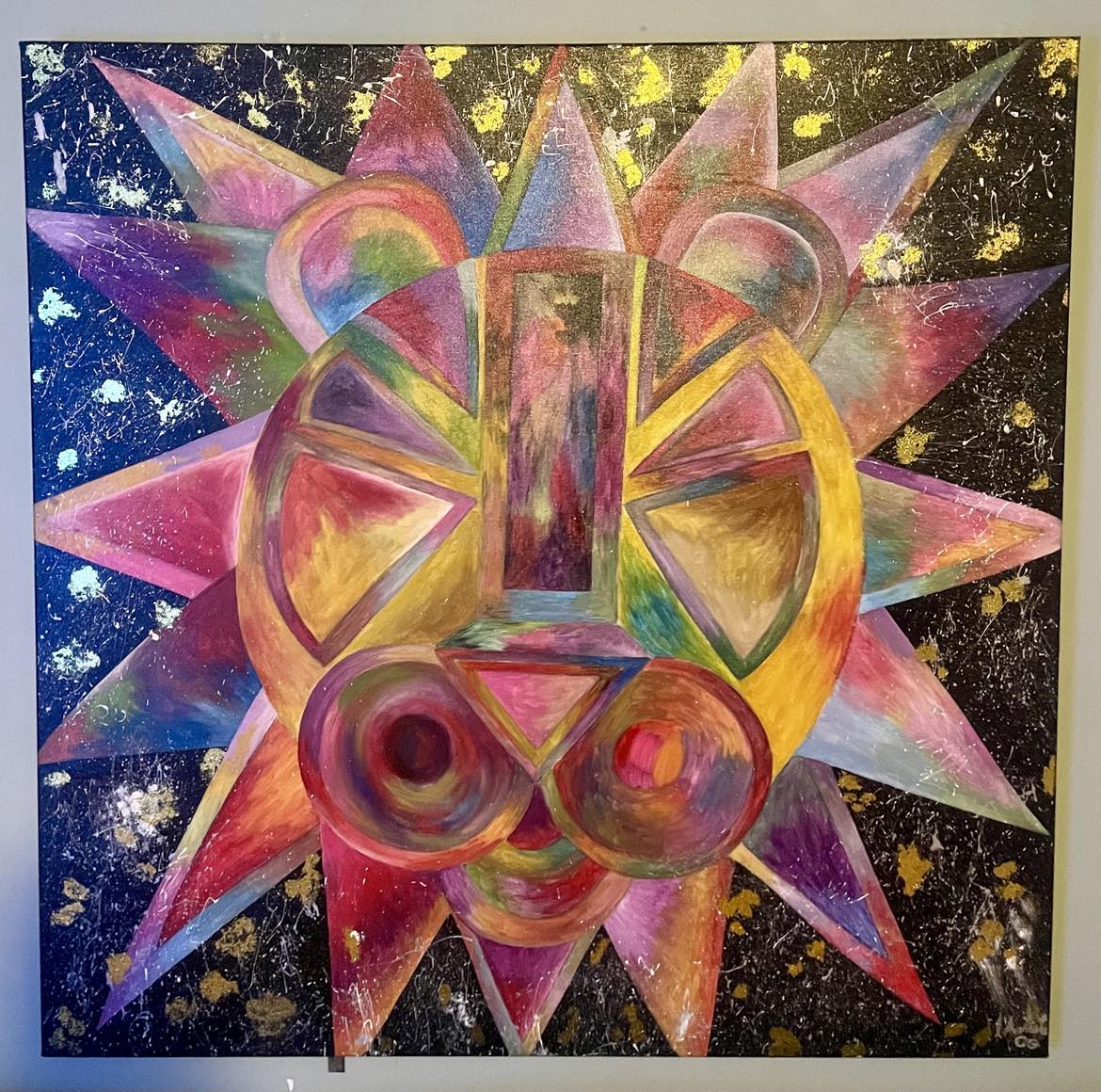 Voici une commande une grande et belle toile d’un lion fait de cercles rectangles et triangles d’un mélange de couleurs vives et foncées et de dégrader dans un thème de la galaxie, des feuilles d’or par endroits ciel étoilé d’éclaboussure de blanc et de gris. Une grande et belle peinture qui m’a fait énormément de plaisir à réaliser et qui me fait une joie de vous là présenter!