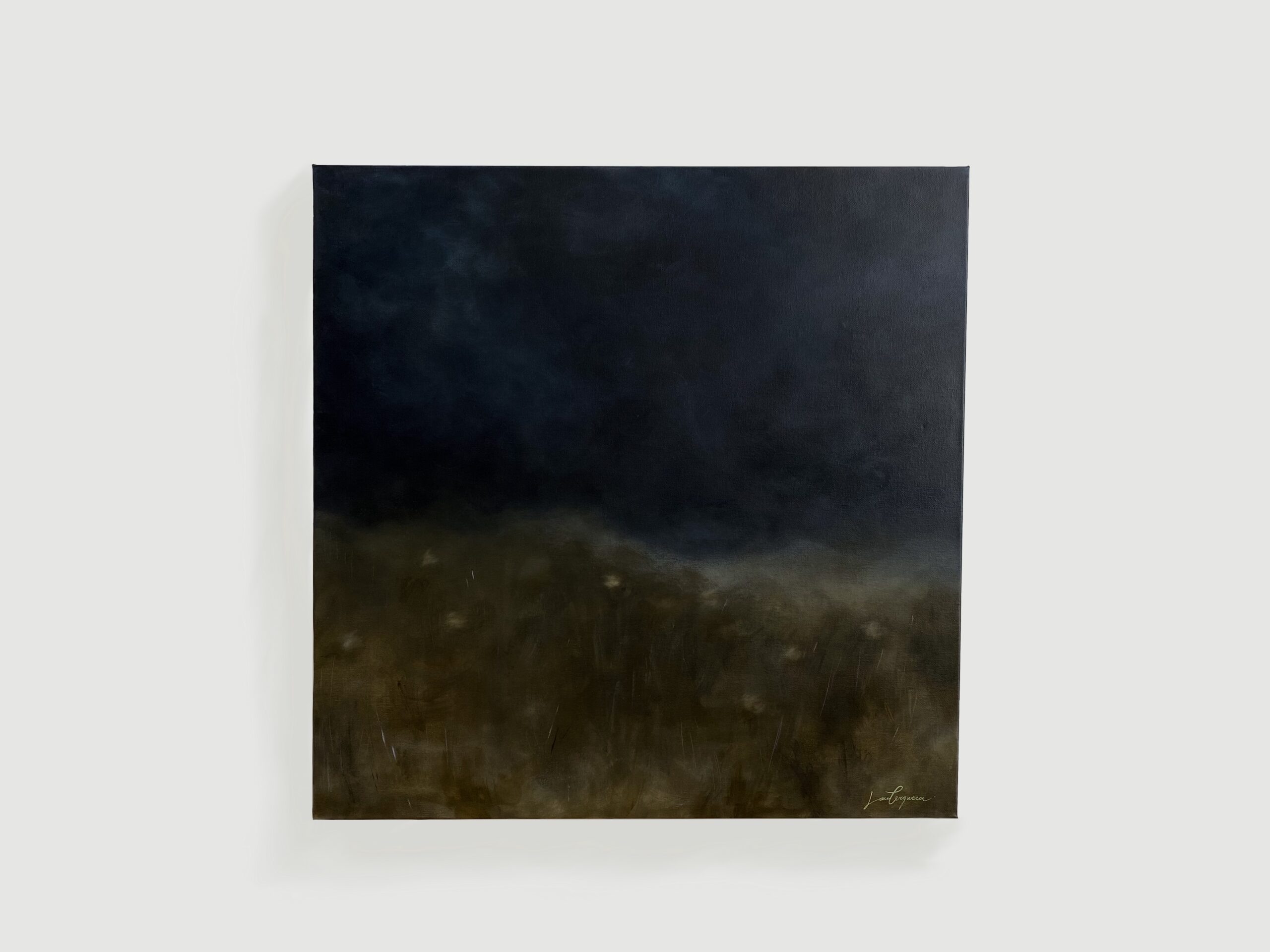 Les formes précises ne m’intéressent pas, ce que je cherche c’est à exprimer des sentiments. J’aime me plonger dans la quiétude de la nature, je capte son atmosphère fugace sans rentrer dans les détails. J’essaie de transmettre ces sensations avec les mouvements spontanés du pinceau. Mon processus créatif commence par des photos d’inspiration que je prends lors de me promenades. Ensuite, je fais des croquis. Cependant, une fois que je commence à peindre, je ne sais pas exactement où je me dirige, je me laisse guider délicatement par le pinceau. Dès mon plus jeune âge, j’ai eu une grande curiosité et surtout un grand amour pour le brouillard. Ce phénomène changeant m’inspire énormément par sa façon formidable de jouer avec les formes et de transformer le paysage. Ma technique incorpore d’innombrables couches de peinture avec des mouvements circulaires éternels qui adoucissent le tout. Je veux que le spectateur puisse s’immerger dans mon travail et puisse en capturer l’essence par lui-même.