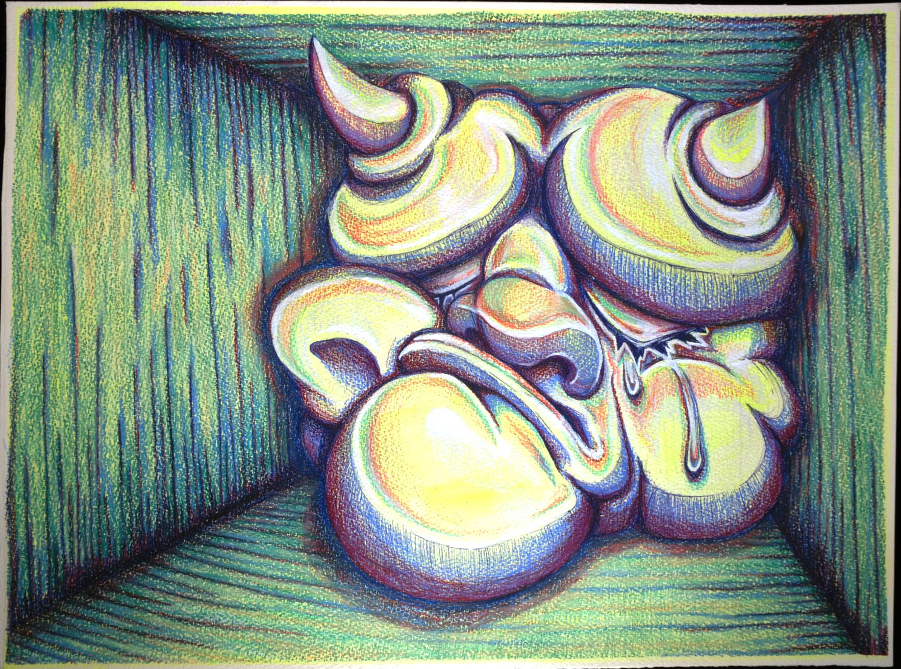 Étant fascinée par le fantastique, je m’inspire du folklore et de la mythologie. Je me sers aussi de mes connaissances en bande dessinée, acquises pendant ma jeunesse, un art souvent sous-estimé dans les milieux artistiques, pour réactualiser ces histoires anciennes. Les thèmes que j’aborde dans mon œuvre tournent donc autour des tensions entre le classique et le prestige de ces histoires fondatrices du canon occidental et le vulgaire de la culture populaire. Pour atteindre ce but, je tente de flouter les frontières entre ces deux catégories en les mélangeant afin de les élever au même niveau. Graphiquement, je me suis inspirée d’artistes surréalistes, principalement René Magritte, Max Ernst et Hans Bellmer ainsi que l’univers de Egon Schiele et des portraits d’Otto Dix.