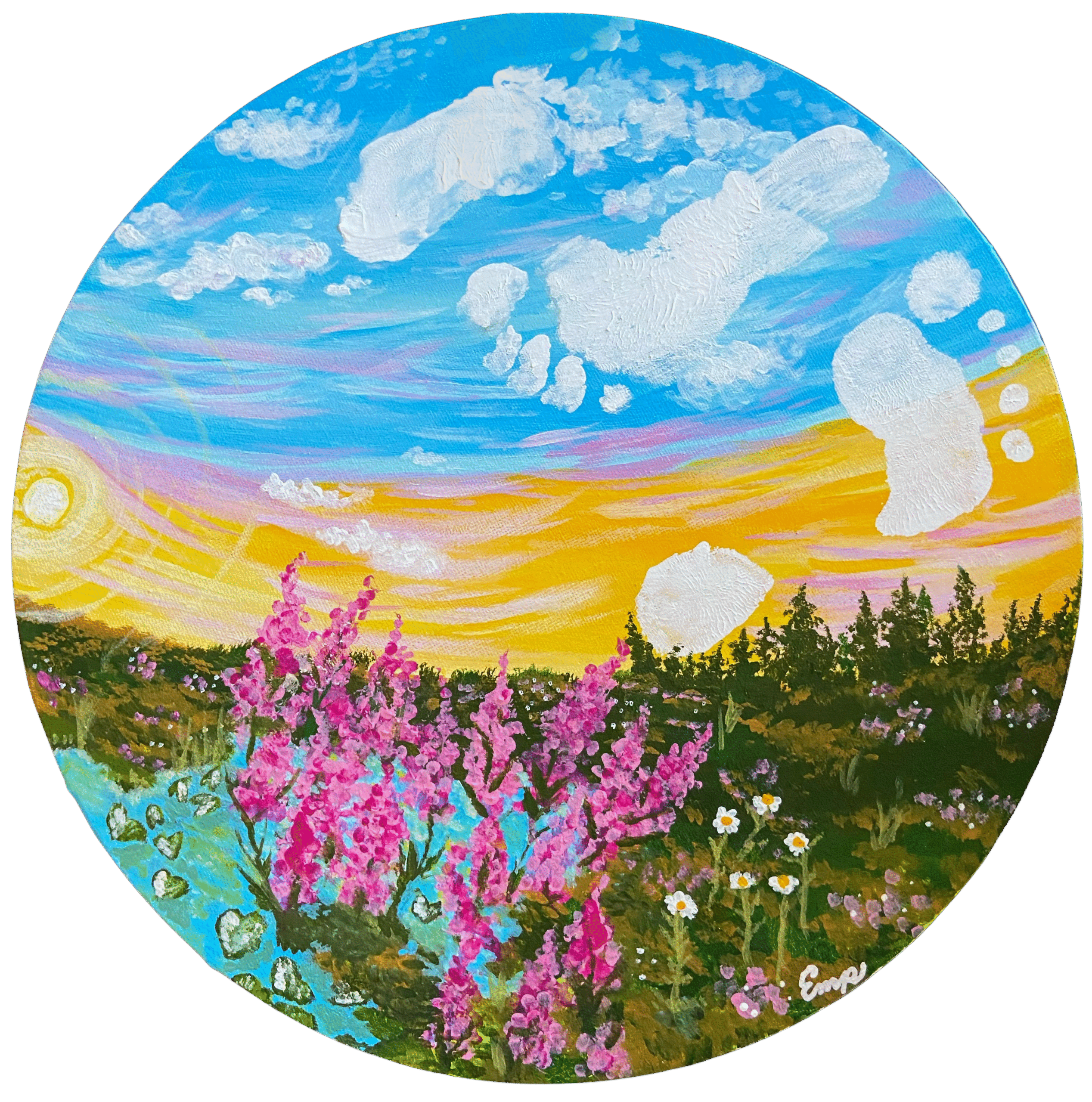 Devenir mère a fait fleurir mon univers artistique demeuré cloîtré depuis l’embouteillage de l’enfance. L’obéissance de l’acrylique a manifesté en couleurs ce dont mes douleurs en guérison ne pouvaient percer la Terre.
