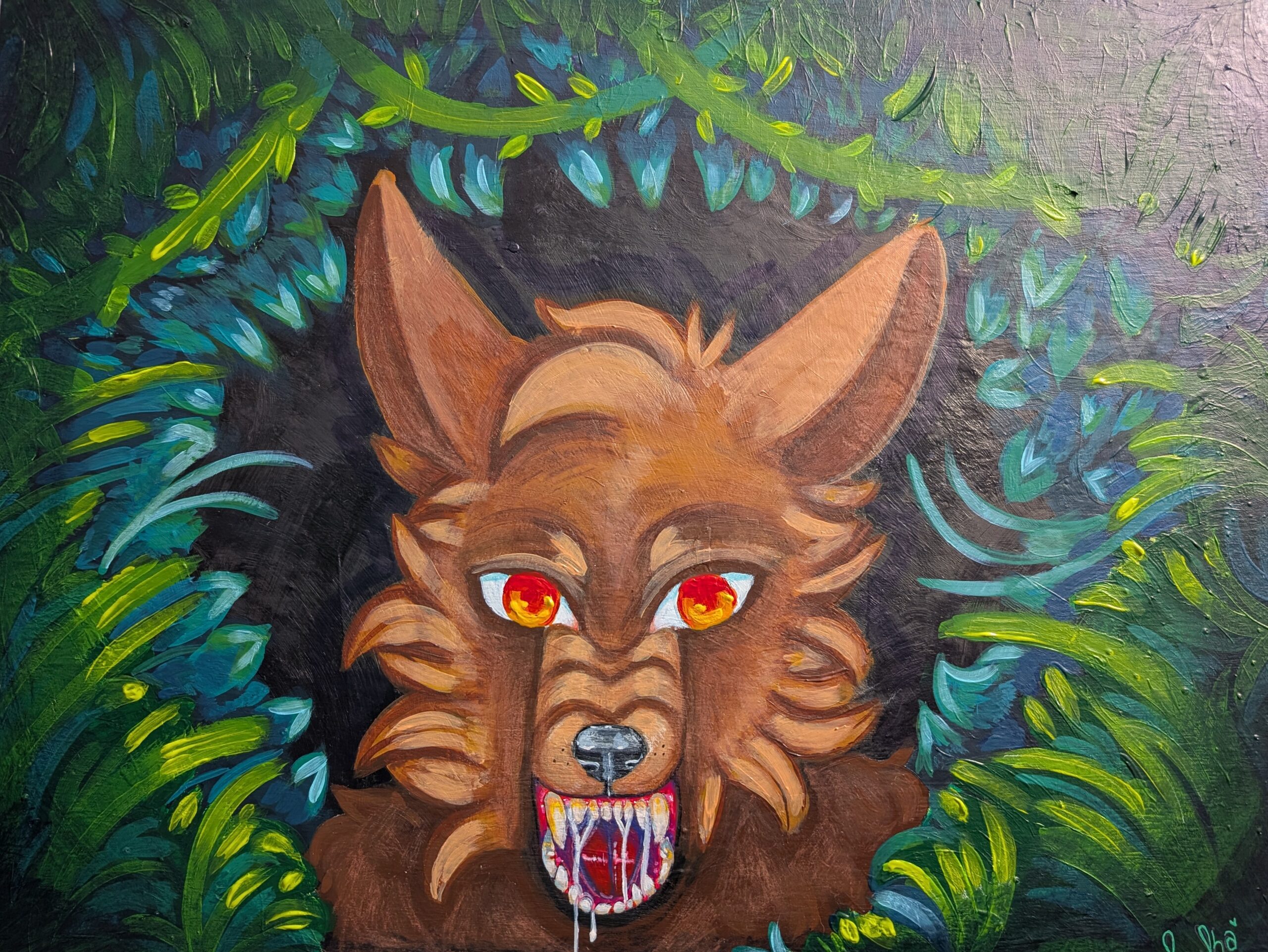 This piece represents how the viewer is viewed as this wolf’s meal, you are watched.